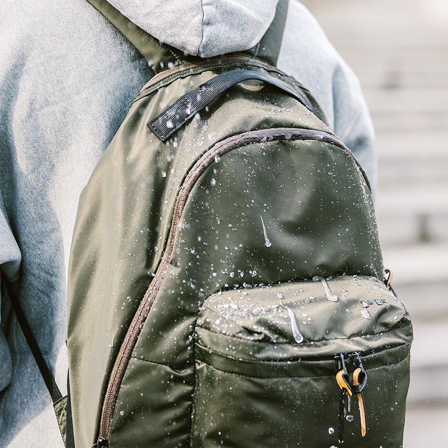 本体素材は高密度ナイロンツイル生地にダントツ撥水加工を施した、撥水力と耐久性が高い素材を採用しています。