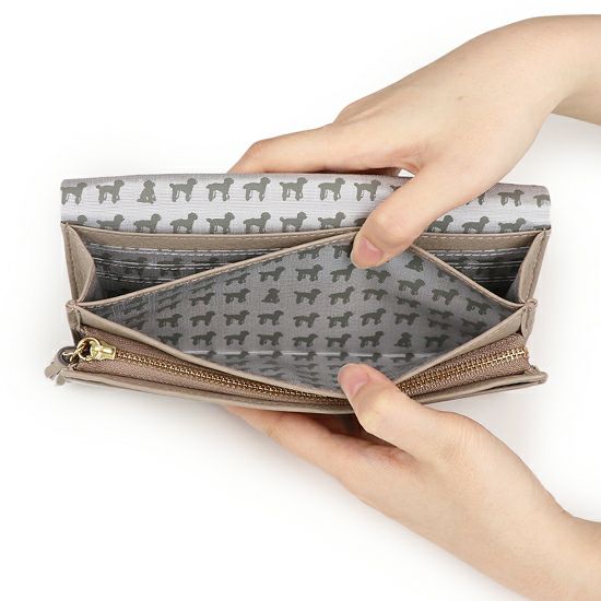 ◆手前にL字に開くファスナー付きのコインケース、奥の札入は前後にカード入れがあり、収納もたっぷり。スマートフォンも入るので、これ一つでランチなどちょっとしたお出かけもできます。