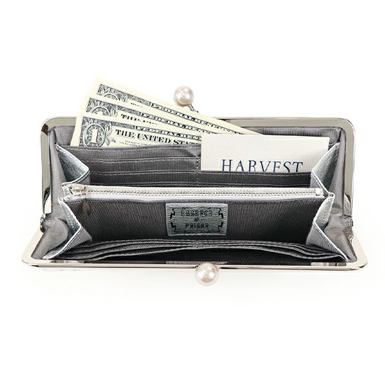 ◆口金つきの長束財布です。しっかりマチがあるので、通帳やペンなどの小物も入れられます。