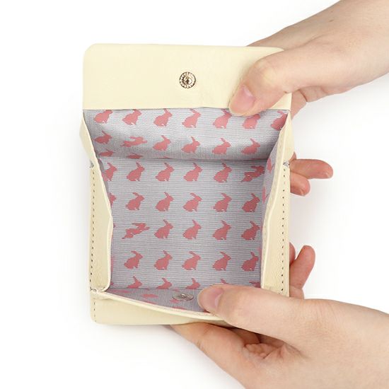 ◆【KAKURENBO】シリーズ ふわふわ仕上げの国産一毛牛を袋縫いで柔らかく作ったお財布シリーズです。表にはワンポイントのキャラクターミニブローチ、中を開けるとモノグラムが賑やかにプリントしてあります。