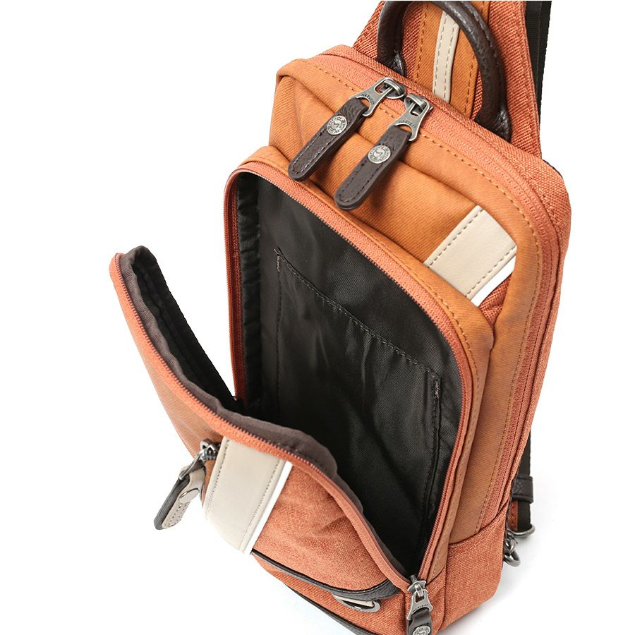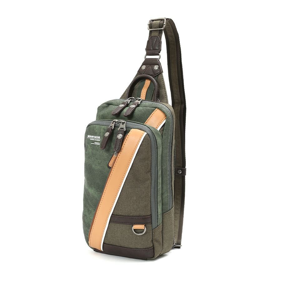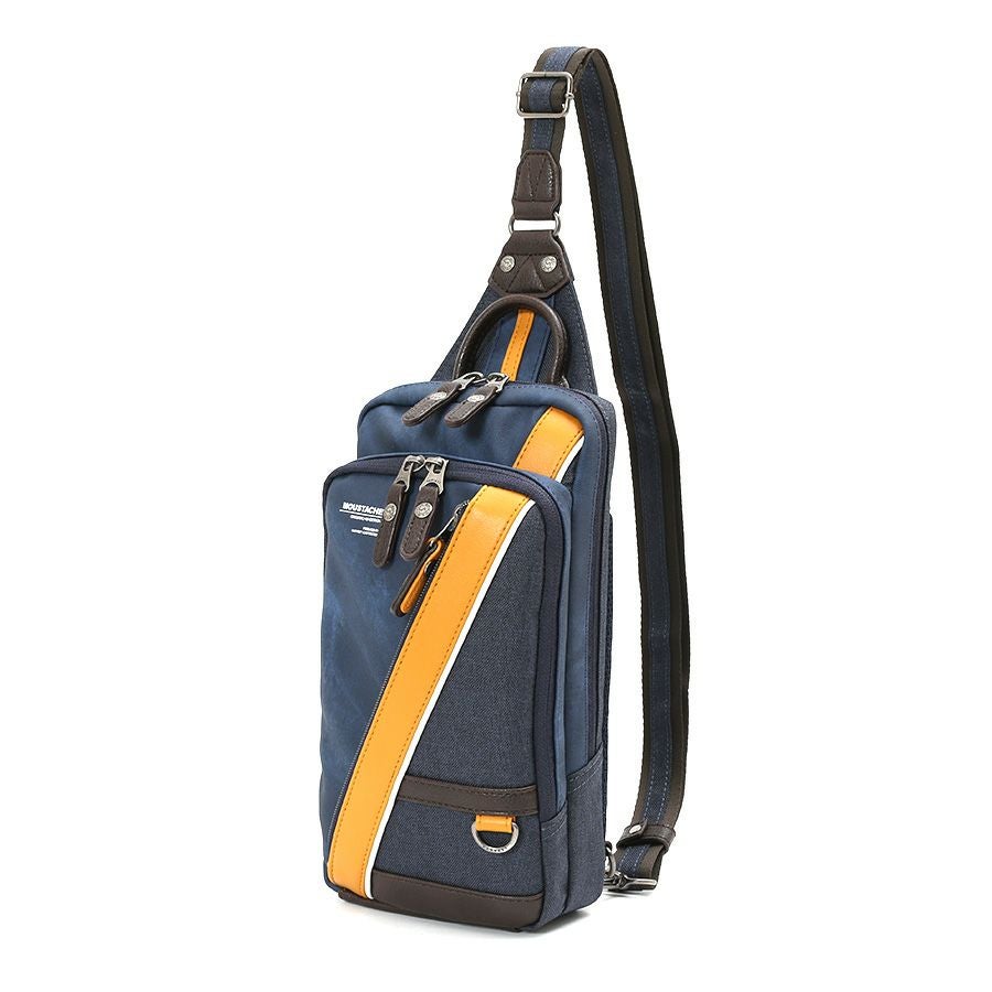 MOUSTACHE 2層式ボディバッグ デニム調合皮×杢調ポリ×シュリンク合皮×合皮 JBJ-0391