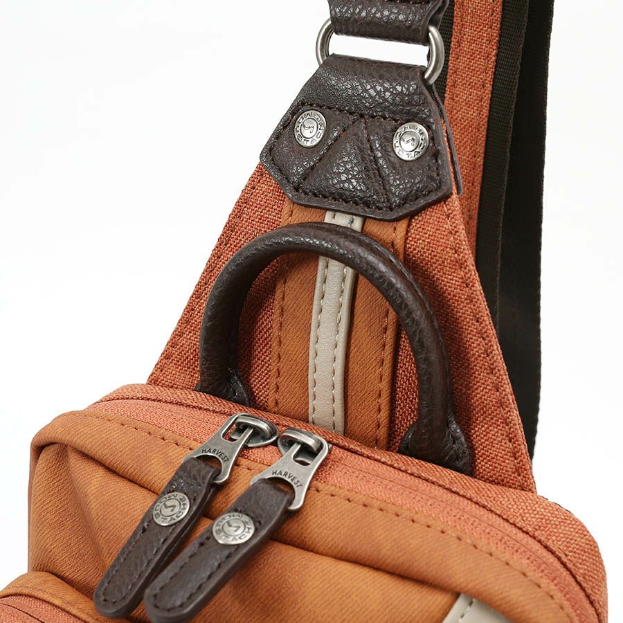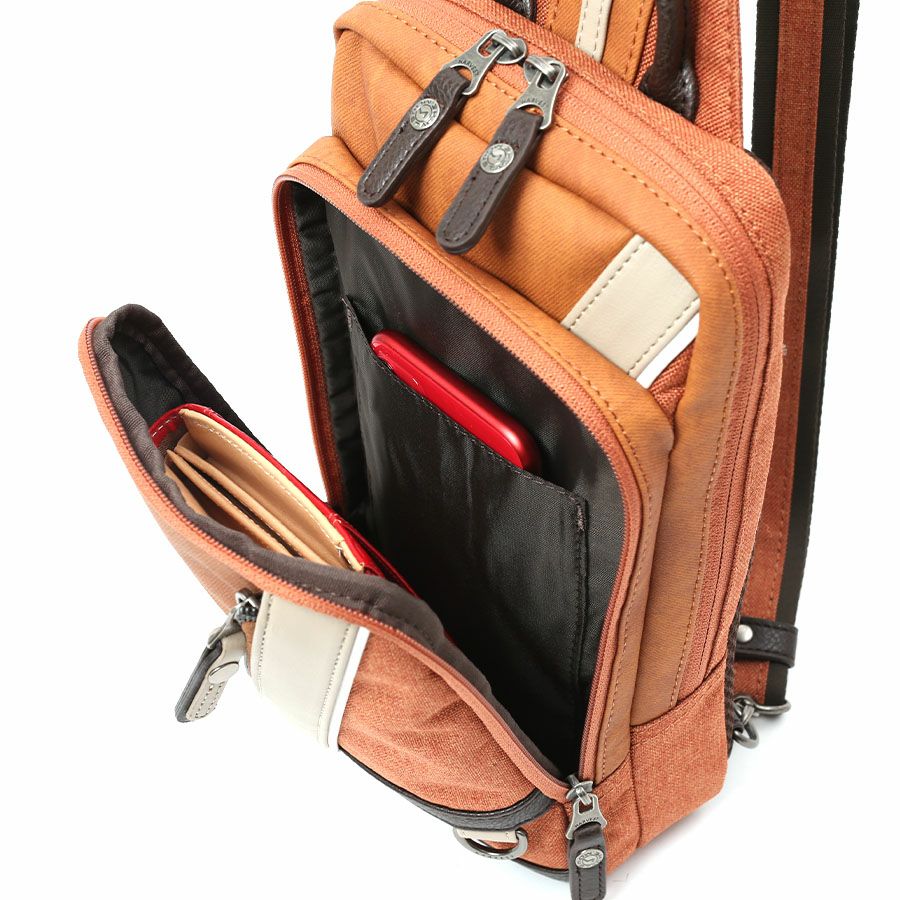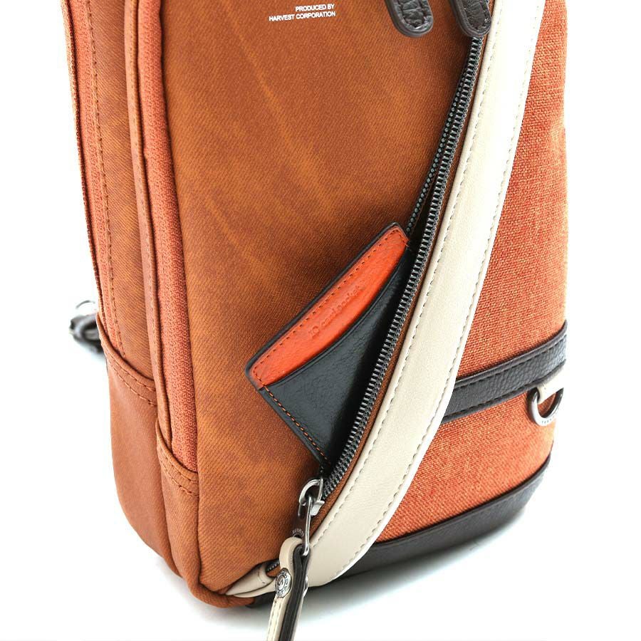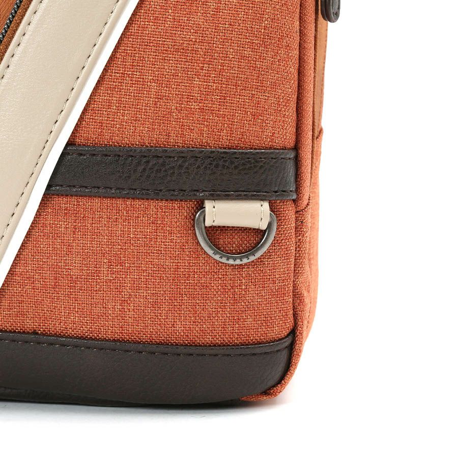 ◆4配色の異素材を組みわせた個性あふれるボディバッグ。