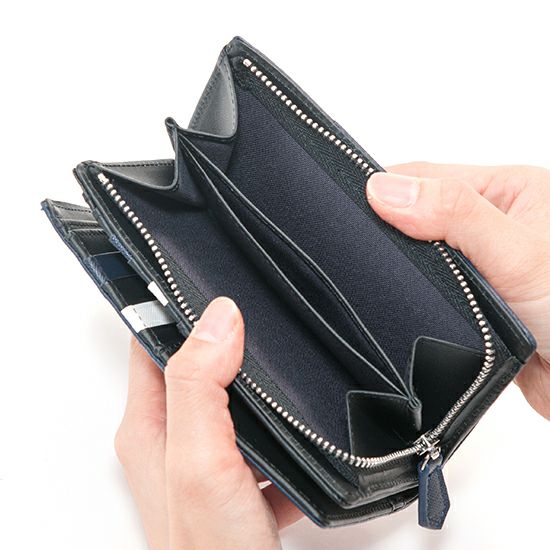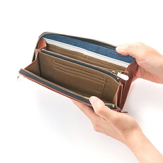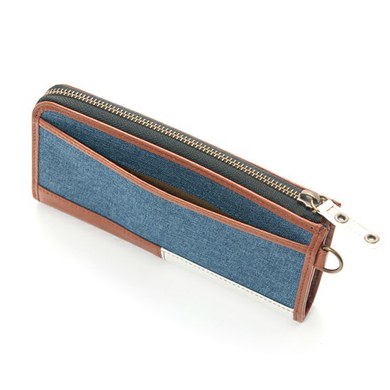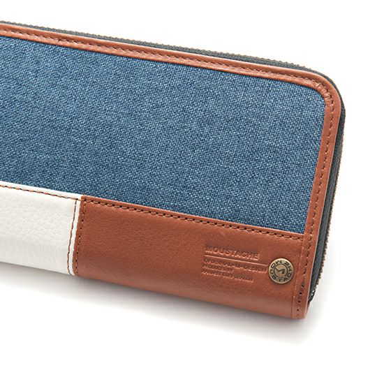 MOUSTACHE L字ファスナー長財布 ポリエステル×牛革 DUQ-4238