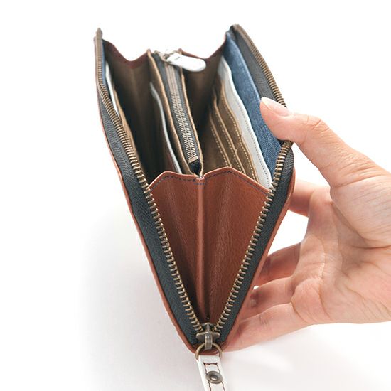 MOUSTACHE L字ファスナー長財布 バッファロー革×豚革 DBR-5406